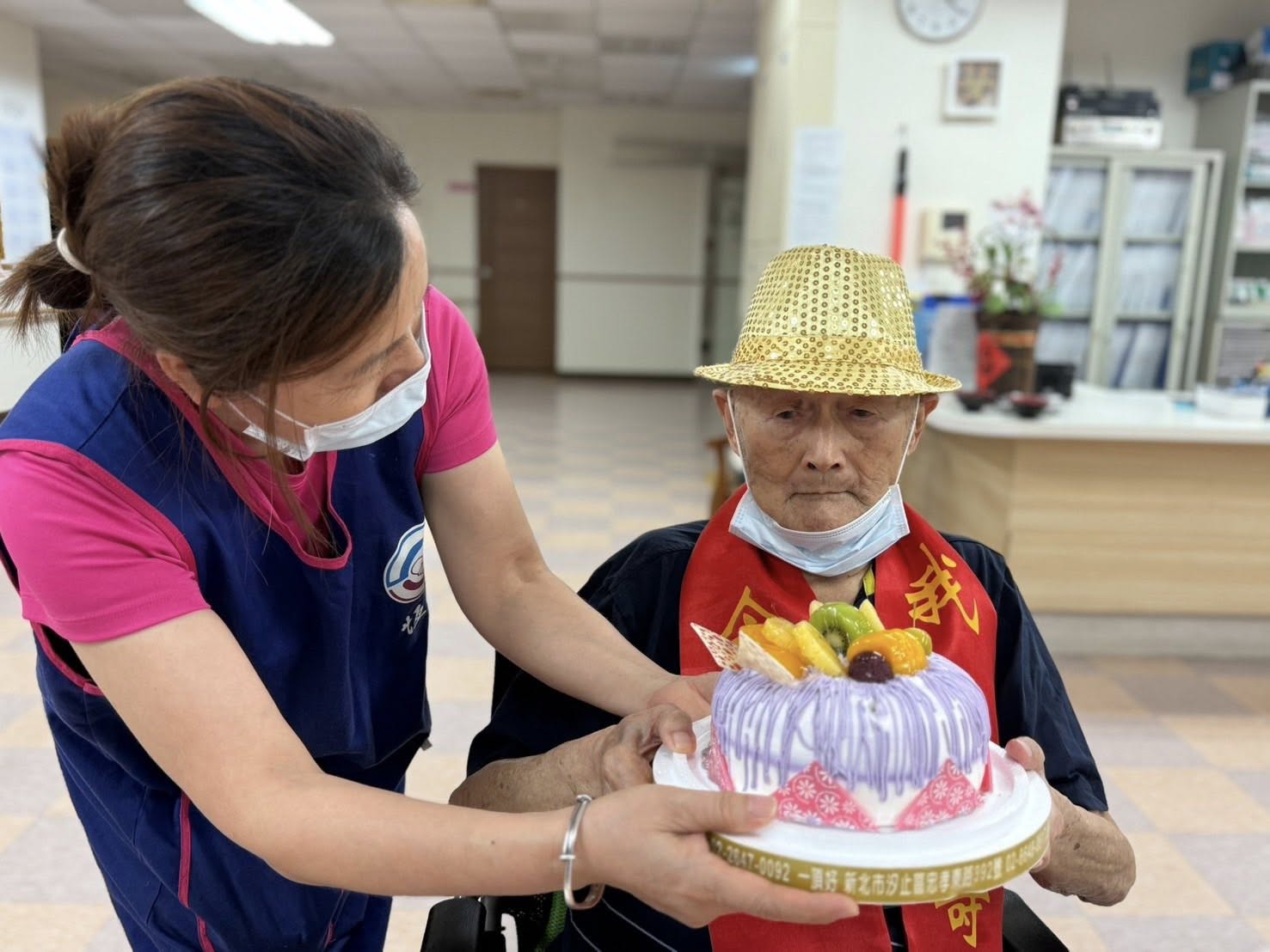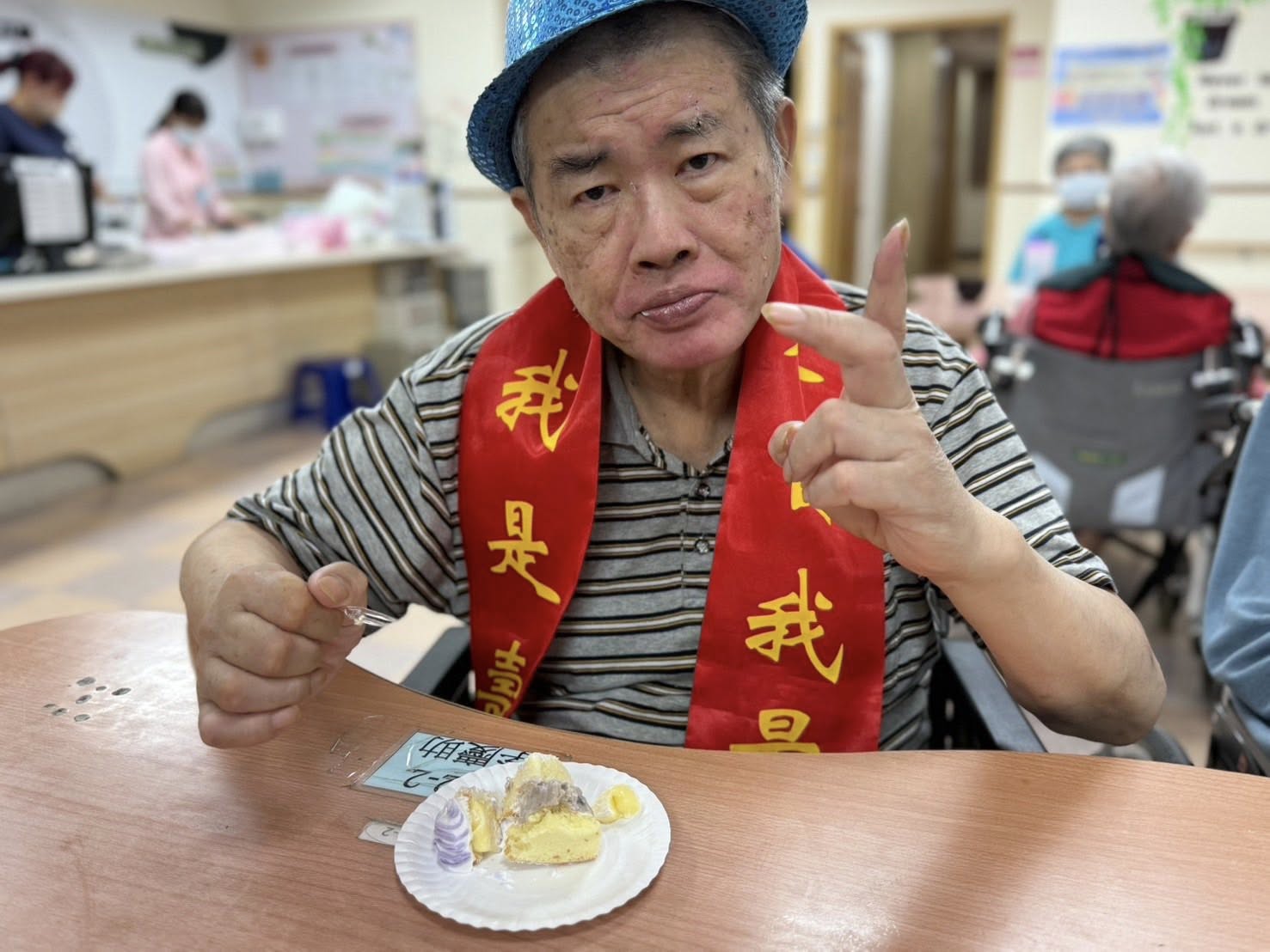 爺爺98歲生日,家人特別準備了美味蛋糕、豬腳特餐,父子兩溫馨慶生,也跟室友們一同分享。