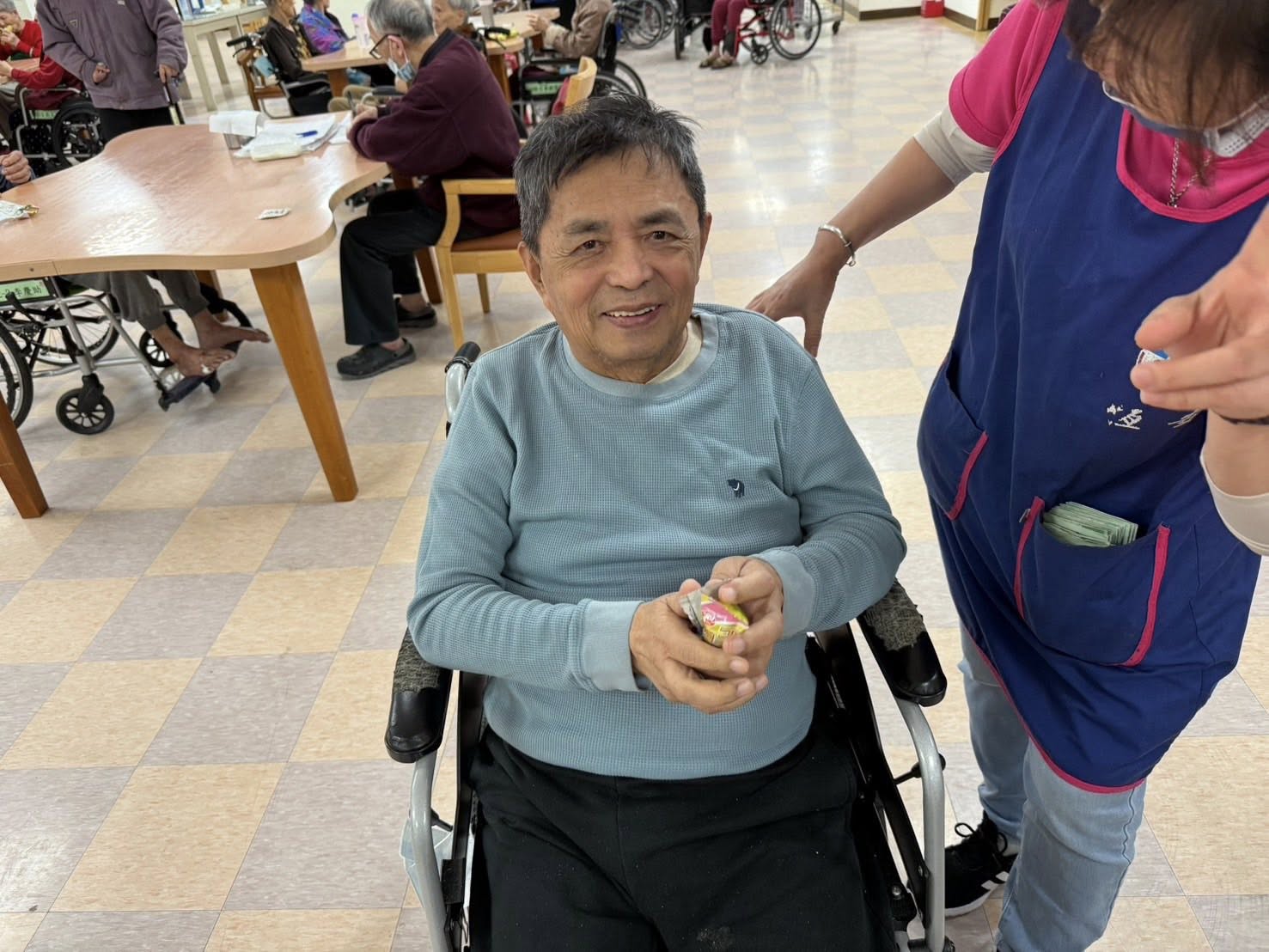 大家推著輪椅、拿著小皮包、開心排隊,認真挑選喜歡的水果、餅乾、飲品……場面就像回到傳統市場一樣熱鬧溫馨。
