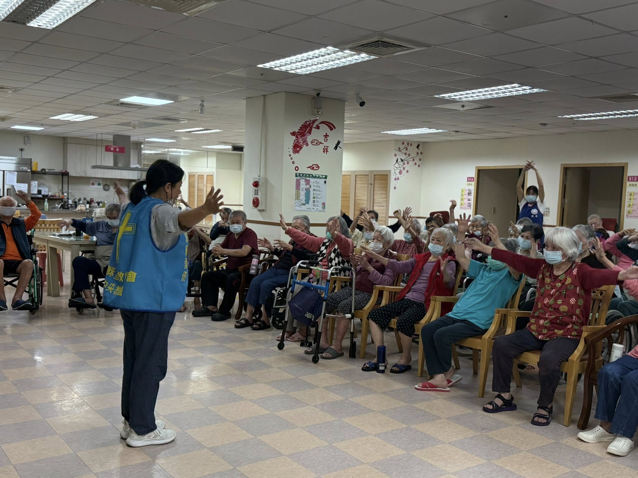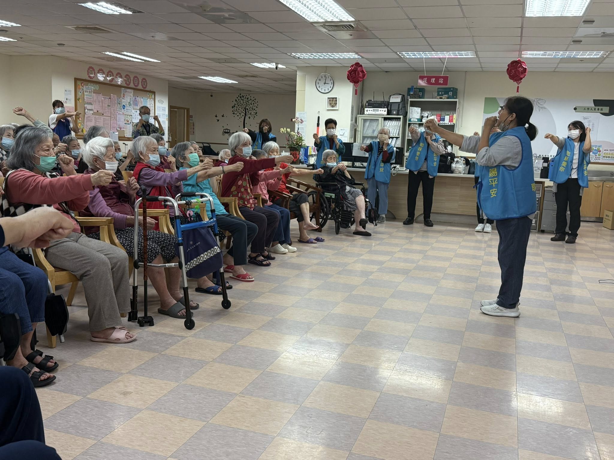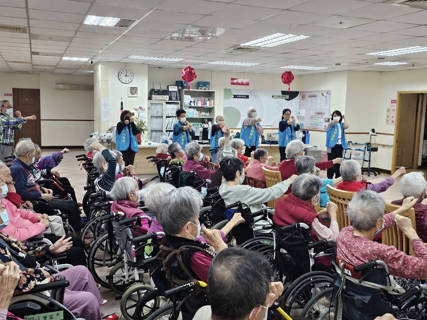 活動由志工老師帶領「手腳肢體律動」,在輕快的音樂中,長輩們隨著節奏動一動、笑一笑,現場洋溢著滿滿的活力與歡樂。